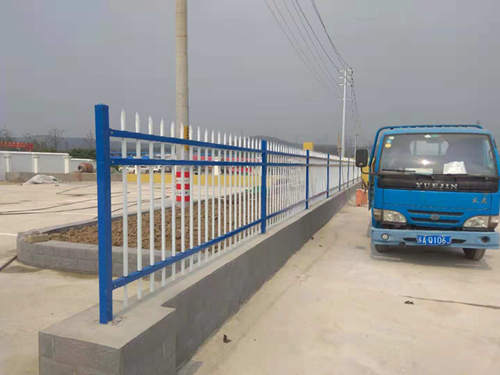 項目部采購的藍(lán)白色三橫桿鋅鋼護(hù)欄價格全部安裝完成