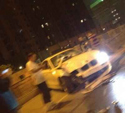 寶馬凌晨撞清涼門大橋上的南京護(hù)欄網(wǎng),寶馬車頭嚴(yán)重變形
